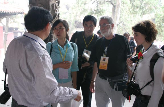 27日,中外摄影家们在“三孔”孔庙、孔府、孔林进行了采风活动。摄影家们每到一处都被景点的东西所吸引,他们拿起摄像机从不同的角度记录下了自己的感受。他们不仅拍摄了“三孔”的建筑、雕塑、园林等景观,也随地抓拍了当地老百姓的日常生活。27日晚,有关摄影家和策展人举行座谈会,在总结“第一届中国(济南)当代国际摄影双年展”和“首届世界大学生摄影展”的基础上,对2008年“第二届国际当代摄影双年展”和“第二届世界大学生摄影展”进行了学术规划和策展研讨,框定了“双展”发展的学术思路。28日,值孔子诞辰2557年之际,中外摄影家对当天在曲阜举行的2006年“同根一脉 两岸祭孔”大典进行了拍摄。摄影家们用专业、艺术的视角捕捉拍摄了整个活动的全过程,用镜头记录了正在发生的历史。大典结束后,摄影家们还到曲阜六艺馆采风,亲身感受到了孔子主张的礼、乐、射、御、书、数六种基本教育方式。