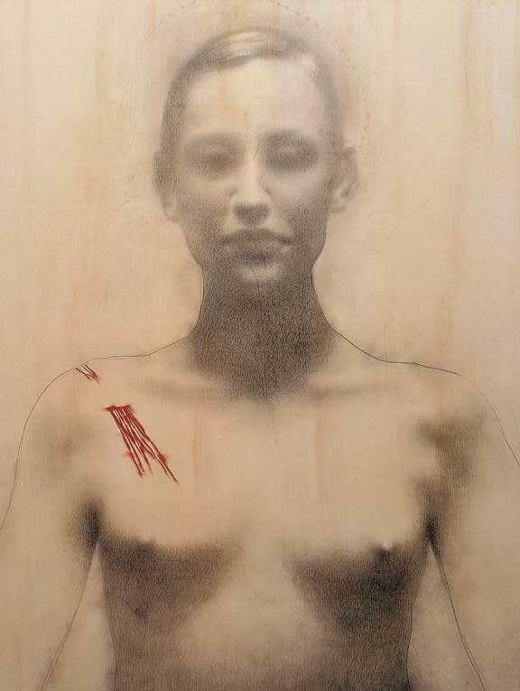 意大利杰出天才莱昂纳多•达•芬奇,从未停止逡巡于艺术和生活之间,探索、实验每一件事,他那著名的密码(布满设计图和各种飞行器话题的笔记本和纸张)透露了他的研究、想象和超前的直觉,为了发明飞行器他研究了鸟的飞行、滑翔机、马的运动、工程学、机械学、水力学、建筑学、星相学、植物学、地理学、童话、字画迷、自动装置、透视法、艺术品、纪念碑、光影理论和其他学科,嘉里亚尼就是与达•芬奇相似的艺术家。不止一次,嘉里亚尼的个性和才华决定了他不允许自己出现知识的断面,最近在国家档案与都灵皇家图书馆藏展——一个珍贵而丰富的展览中他试图解读莱昂纳多的《岩间圣母》以及其中的天使(就像过去解读米开朗基罗那样),他对画作进行沉思,利用一张大型木桌,一张古老而崭新的面孔,用他自己的方式重新解释画作和其自身价值,嘉里亚尼从其对神话、神秘事物和符号的特殊兴趣中汲取营养,也许还有地下心理学,去破解如同幽灵般的创新者贯穿十九世纪整个欧洲的思维、影响和形象,隐藏在明显表象下的重要机关。国际象征主义和意大利象征主义对古典主义和绝对主义的回归愈发重视,这是一项永无止境的探索,从禅宗到《给劳拉的咒语》作品的循环(源自东方的不明语言),到天主教三神一体的三联体应用,正如在中世纪和文艺复兴时期的意大利古老传统中发生的那样。他的绘画,绘制在木板上,材质为天然杨木或欧洲白桦木,非常纤细精致,如同灵魂的直白,精神和思想的层层光影。黑白,渐变,光,阴影,纯白,红色标记,所有的元素共同重新塑造了一个来自远古的女人面庞 ,但她却又生活在现代,就在如今,如此逼真,与我们的生活相连;如同他的现代“天使”。1954年出生于蒙特基奥•艾米利亚,他在那里生活的时期进行了大量的学习,毕业于波洛尼亚学院且目前任教于该校,他获得国内、国际多项重要大奖,并得到了国际认可,他的展览曾在纽约、巴黎、法兰克福、巴塞罗那、维也纳、东京、伦敦、科洛尼亚、布达佩斯、安特卫普、鹿特丹、费城、洛杉矶、墨西哥、北京等地举办,当然还在意大利各大城市的重要博物馆举办,多次参加威尼斯双年展、罗马四年展,他是一位博学、细腻、多才多艺的艺术家,同时热爱摄影、摄像和写作,善于“概念派”创作,比如在一张特殊的纸上画一个随意的图案(纸张和铅笔都是他的创作成果),把它折起来,几年以后再打开,检验图案成双的情况,也就是在纸张的另一面出现的效果,这样就获得“双连板”(古时可拆合的双连书写板或画板)的效果,并用于他某些作品中,这种“双倍”和孪生理论出现在近代一些艺术家的作品中,如法国画家库提赫与德加斯,作家兄弟龚固尔和马拉美的重复话语,俄罗斯作家托斯托埃夫斯基和“索西娅”,美国摄影师黛安•阿勒丝,在音乐、心理学、心理疗法、政治和其他领域的例子毋庸罗列。在嘉里亚尼的一幅画作中,绘有一个巫师、炼金师,对着中世纪和文艺复兴时期炼金师的点金石施加咒语,不断探究点石成金的方法。这就是嘉里亚尼的长时间实验和不断探索,他的每一件巨作都要经过几个月的整理推敲,这样才能把木头化作神秘的桌子,就像我们生活中金色的背景,重新评价并肯定画作赢得比油画更高或同等声誉的可能性,就像在意大利的辉煌历史中发生的,给予面孔、花瓶和花朵—如高贵的兰花—生命和呼吸,似乎在享受那远古的存在,永恒而无限。他是一个真正的“魔术师”,诱惑着各个年龄的人,他传达的文化很深奥却同时贴近大众,成为流行,他是类似莱昂纳多的意大利式天才,敢于尝试其他艺术家望而却步的事物。到底什么是天才?也许如此:他敢于走向其他人止步的地方,从而获得进入向未来开放的世界的力量。这就使嘉里亚尼,当今意大利引以为傲的最有影响力的艺术家之一。他的敏感、细致、精通、轻微的不安和灵性一定会使有着悠久、高雅、非凡的千年传统的中国观众为之着迷。