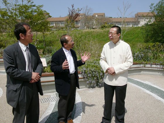 淡路景观园艺学校以其全新的教育理念让代表团成员们流连忘返,看了一遍又一遍。在稻田先生和现任该校副教授的沈悦博士的陪同和详细介绍下,围绕校园设施和教学实习基地、实验室、实验场所等学术和技术问题,代表团成员与设计师们进行了认真的探讨,一直到个个肚子饥肠辘辘,才恋恋不舍的和其告别,结束了访日第一天的第一项实地考察活动,进入日本著名建筑大师安藤的“梦之舞台”。