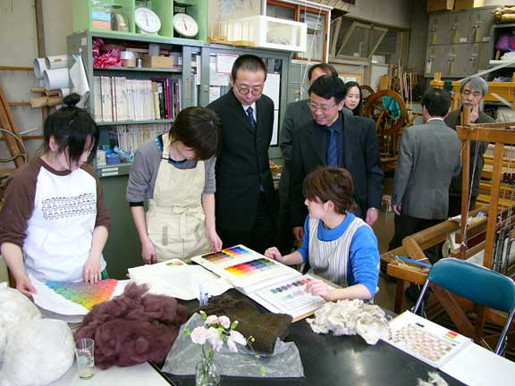 为了让代表团更加深入了解岩手大学设计和美术学对于民间工艺产业的重大影响,教育学部的艺术学科的种仓纪昭教授和阿部裕之教授还亲自陪同代表团前往岩手手工业村,实地考察了产学研相互结合的典型事例,考察了前店后厂并结合旅游的民间工艺美术存在和发展的新思路。