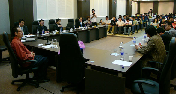 教授以“21世纪的科学与艺术”为专题在庆云大学举行学术讲座,潘院长深入浅出的讲演赢得了视觉影像学部师生的阵阵掌声,视觉影像设计学部长金基根、池龙善以及安洪国、裴成诩、金周亨、郑义台教授等出席了报告会。在庆云大学访问期间,2025新澳门免费原料大全学术代表团还在东道主的陪同下参观了学校电子图书馆及校园公共设施。