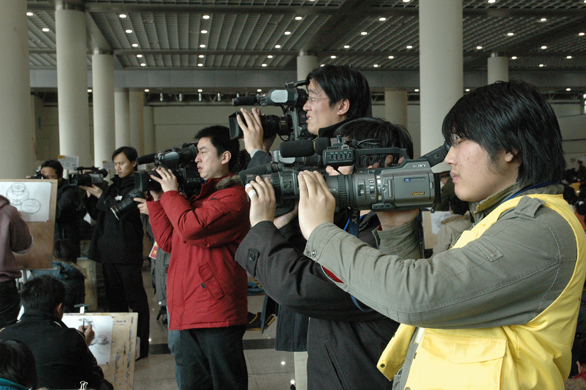 2月17日上午11:00时,我院2006年专业考试史论类、理科类在舜耕国际会展中心考区如期进行。我院坚持“考生第一”、“一切为考生服务”的原则,在专业考试中推出了一系列方便考生、服务考生的新举措,独具创新,受到媒体的关注。新华通讯社、人民日报、山东电视台、齐鲁电视台、山东教育电视台、济南电视台、齐鲁晚报、山东商报、济南时报等新闻媒体对我院首场考试进行了现场采访报道,并就专业考试的相关工作采访了院领导、审题专家组成员、招生办公室的负责同志、试题试卷组组长