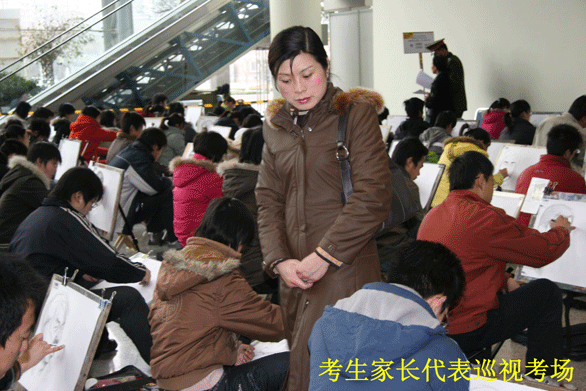 一位济南的考生家长在焦急地等待女儿,在和记者的交谈中,他说:“艺术类考生越来越多了,生源太多,是一种社会现象。要加强考试规范,提高透明度。我女儿只报考了山工艺,山工艺信誉度高,从整个招生的程序来看,服务态度好,我挺满意。”