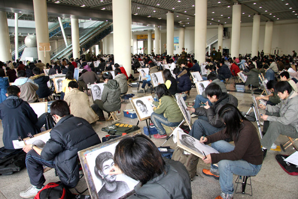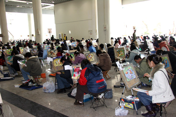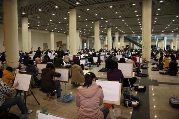 2月20日,我院2006年美术设计类省内招生考试的最后一场考试在济南舜耕国际会展中心结束,此前文理类考试已于2月17日结束,至此,除服装表演专业外,我院2006年省内招生专业考试圆满结束。 2月17日至20日,近2万名考生参加了我院2006年招生专业考试,考试期间,我院领导、各部门工作人员及学生志愿者本着“安全第一,考生第一”的原则,认真负责,为考生提供了周到的服务,保证了考试顺利进行,我院的组织工作受到广大考生、家长、省招生考试院领导及新闻媒体好评;我院制订了严格的考场纪律,监考人员认真执行纪律,保证了考试的公平、公正;院领导于茂阳、潘鲁生、郭兆志、李世平、李新、刁在祥、张云龙、孙凤刚多次到考试现场视察工作或驻守考试现场领导工作。在各部门工作人员和学生志愿者的共同努力下,我院2006年文理类、美术设计类省内招生考试工作取得圆满成功。