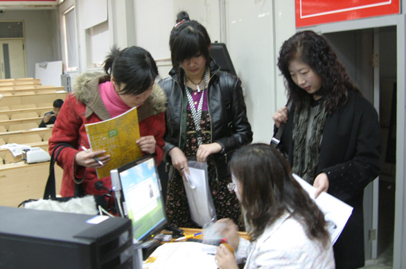 2月21日,我院服装表演专业2006年省内招生专业考试报名工作在千佛山校区阶梯教室开始,副院长刁在祥视察报名现场,并询问了报名情况。