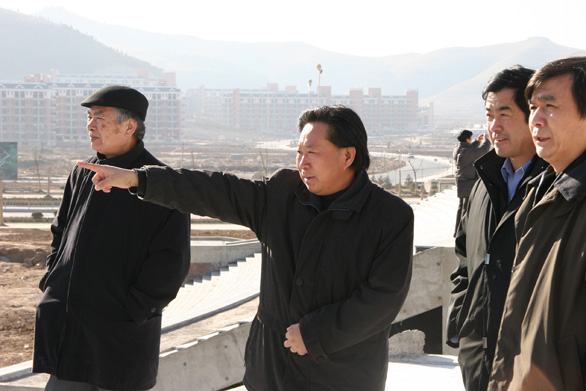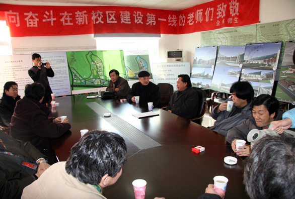 在新校区建设指挥部,王秀存副院长、刁在祥副院长与各位专家进行了座谈,介绍了长清校区建设情况,并讲解了长清校区整体规划设计模型,各位专家充分肯定了我院长清校区的建设。
