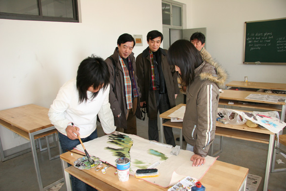 12月17日上午,中央美术学院副院长谭平、中国美协副主席王明旨、中国美术学院副院长宋建明、四川美术学院副院长罗力、鲁迅美术学院副院长田奎玉、广州美术学院副院长赵健、西安美术学院副院长郭线庐等参加2005全国视觉传达设计教育论坛的专家领导,在我院副院长王秀存、刁在祥的陪同下参观了我院长清校区。