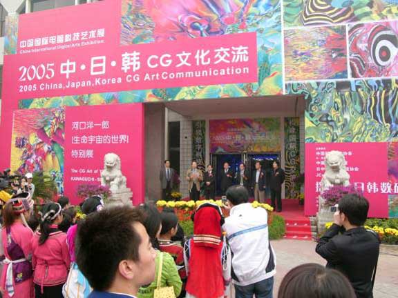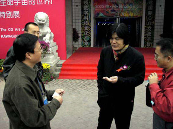 作为这次研讨会唯一的数字艺术展,2005中日韩CG文化交流展同时在中国科技馆举行,河口洋一郎先生展出了创造性的作品,使人们对数字艺术有了一个全新的了解。在展会其间,日中CG文化交流协会会长大岛景弘先生邀请数字艺术系参加明年的2005中日韩CG文化交流展,河口洋一郎先生也愉快地接受数字艺术系王传东主任的邀请,计划于近期到我院进行交流。
