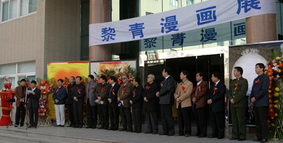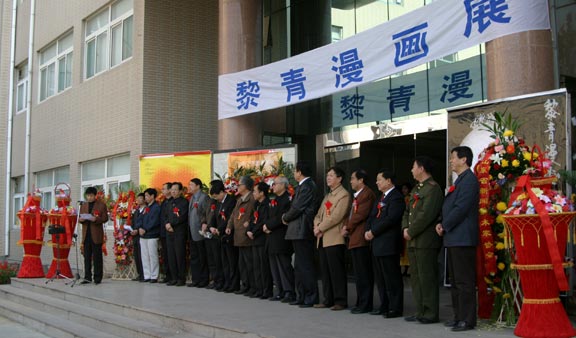 等为黎青漫画展剪彩。随后,众位嘉宾和校内外广大观众一起参观了漫画展。