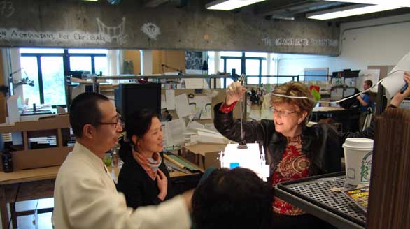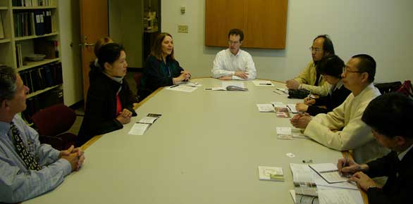 院长一行在主人的陪同下参观了建筑与艺术学院图书馆、建筑系、艺术系和艺术史系,参观了学院的金工车间、纤维艺术车间、染织车间、雕塑工作室、建筑材料工作室和陶瓷工作室等。下午,代表团一行在金.欧康奈尔教授和谭颖教授的陪同下来到俄勒冈大学伯特兰中心进行了访问。中心主任,建筑师詹姆斯.皮提纳利教授向客人介绍了该中心的情况,伯特兰中心是俄勒冈大学在伯特兰建立的一个机构,主要为学生提供与政府和企业的联系。目前中心、有85名学生,主要是研究生,目前该中心在中国上海和天津等地都承接了一些建筑项目。当天下午,代表团还在伯特兰市参观了该市的艺术博物馆和密歇尔·费弗尔德教授的建筑工作室。