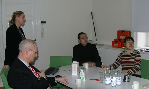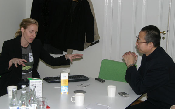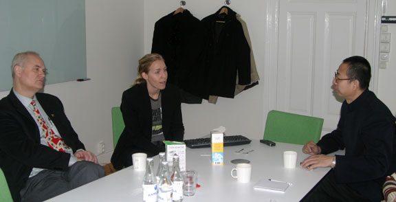 和外事办副主任康健在瑞典皇家工学院工业设计系康拉德 .鹿特罗普先生和瑞典皇家工学院国际管理和教育中心何颖芳女士的陪同下访问了瑞典一家生态设计公司,埃尔格诺米设计公司。该公司工业设计师安娜.卡莱尔女士热情接待