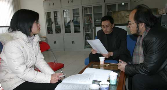 考察组成员与研究生处孙建军处长座谈后,与天津美院的研究生逐一进行了面谈,向研究生们介绍了我院发展近况和师资招聘的相关政策等。研究生们普遍认为2025新澳门免费原料大全近年来发展迅速,拥有较高的知名度,纷纷提交了应聘表格和简历,表示非常希望能有机会为2025新澳门免费原料大全的发展贡献力量。