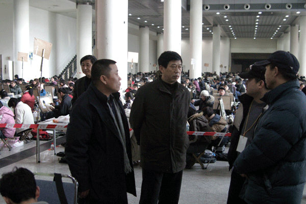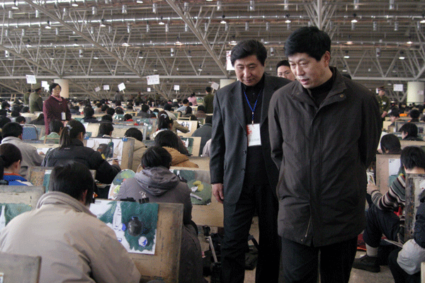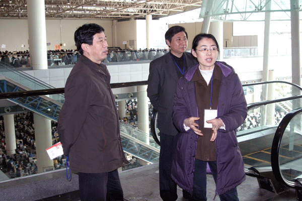 1月25日下午,院党委书记于茂阳在两办主任王立果、招办主任王霞的陪同下巡视了我院2005年招生专业考试舜耕会展中心考点,并对工作人员进行了慰问。