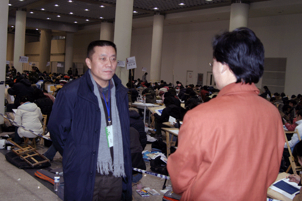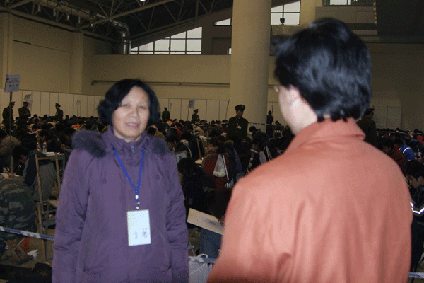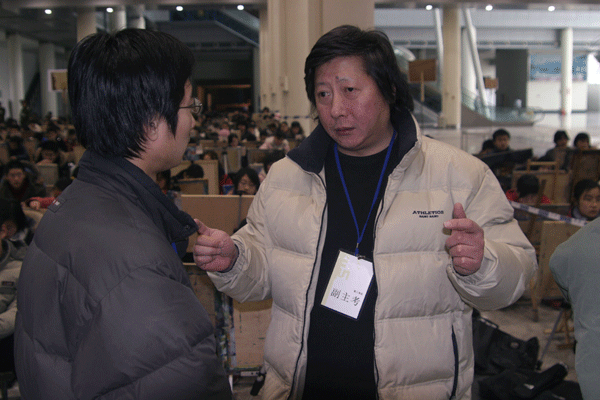 副主考岐周说:“今年监考环境与往年有所不同,采用了大场面,互通式监考,便于管理。大空间,通透性强,不论从哪个方向都可以监视整个考区,排除了“死角”问题。同时还便于监考人员大面积扫描考场内出现的作弊现象。参与招生工作的学生工作人员比往年都多,他们做了大量工作。”同时,岐周还谈到,相当一部分考生怀有作弊心理,要防止、杜绝作弊现象的发生,关键是监考人员要尽职尽责。今年我们学院在这一方面做得很好,建议以后在考试现场增加与考试相关的专业老师作为监考人员,及时解答考生的疑问。”