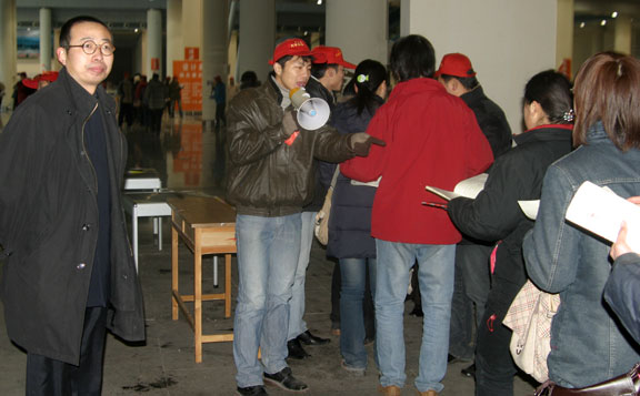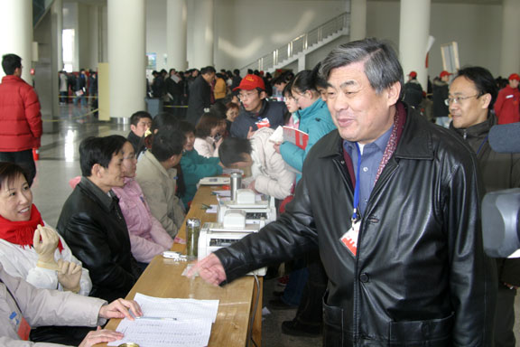 1月20日凌晨4:00,舜耕国际会展中心已经站满了排队报名的考生。他们冒着冬日的寒风,耐心地等待着,至早上6:00,队伍已延续到几十米以外。