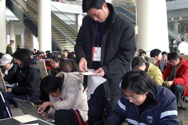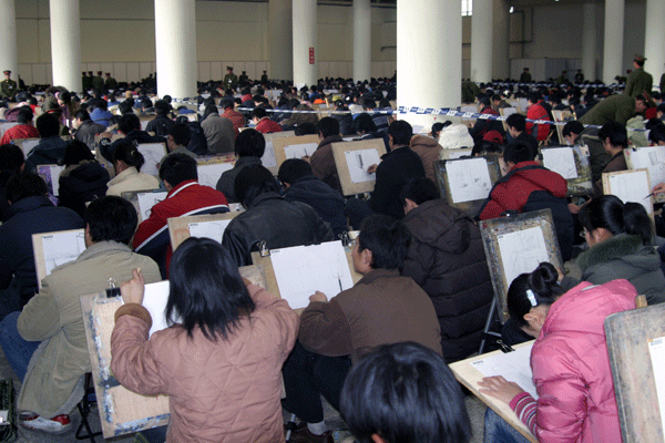 题库进入后,由来自滕州的陈飞利和济南的段国庆两位考生家长代表进行现场抽取试题。今年我院试题库共备有500多套考题,题库由我院面向国内征集试题和自主组织专家所出试题共同组成。