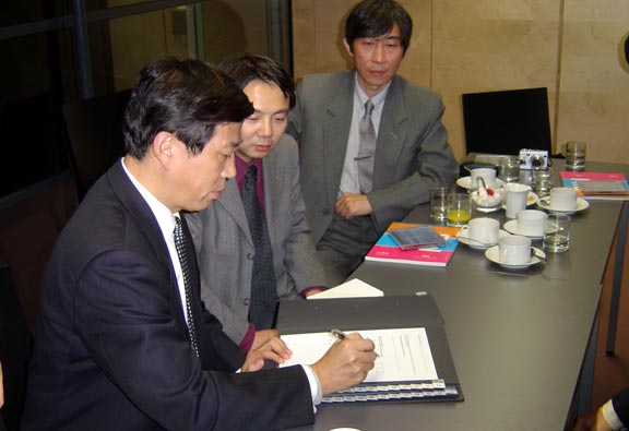 2004年10月21日,于茂阳书记带领学院外事办康健副主任、教务处