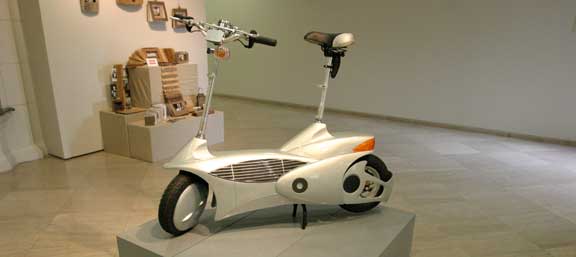 《都市环保MOTO设计——契合》遵循设计以人为本,与自然相协调,长岛可持续发展的现代设计理念,针对“都市环保型MOTO”这一特定车款,进行了区域特征、车款特点、技术性能指标等多方面的探讨,最终确定为以燃料电池为基本动力、注重车款的便携性(可进行车载)和整体性的设计主旨。在设计中通过形态的整体线型以及造型的虚实处理,力求表现出产品的时尚性、灵活能动性,以及尽量减少生产中零部件的数量,降低生产成本。
