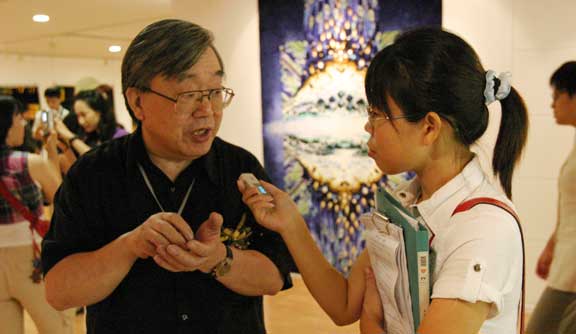 昨天晚上,上海市的领导在参观的时候,看了我们很多环境艺术作品,提到了一个问题,我们过去对于装饰艺术的理解具有它的片面性,你们艺术设计里面包容了非常浓重的宣扬中国传统文化的大型装饰艺术,非常好。所以艺术不在于形式,而在于内容,它的思想的深度,我听了以后也觉得是很有见解的。所以我们东西不能看大小,一件很小的东西,或很大的东西,都有它的精神内涵,所以这次展览不管大大小小,方方面面,我们都给它一种同样的地位,使艺术家的思想在这个艺术的殿堂里呈现给观众。