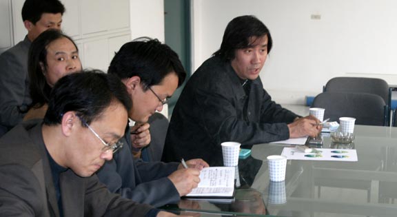 院长针对座谈中提到的问题对装潢艺术设计系提出了几点要求。首先,作为省级重点学科,要树立学术团队意识,发挥学科龙头作用。装潢艺术设计系的教师年龄结构比较年轻,参与社会的能力较强,有自己明显的优势。因此,要积极思考如何承担起建设重点学科的重任,树立严谨的治学态度,加强教学研究,不断推出本专业或本专业教学的科研成果。装潢专业是山东省118个重点学科之一,作为一个艺术学科,其专业优势很明显,但同时要看到该专业普及性广,竞争激烈,同时也存在一些劣势。在全国扩招艺术设计专业的情况下,应该调整专业方向,在人才需求市场上寻找特色,在特色上强化学生适应社会的能力培养。在目前艺术设计专业全国普及、全省普及的形势下,应该把着眼点放在全国重点院校,学习兄弟院校的教学方法,多进行教学交流,扎扎实实地炼好“内功”,争取在国内确立特色,在山东树立品牌,在学科建设上出成果,在设计活动中出原创性作品。在这个基础上多与国内外同类院校(系)进行学术交流,通过大型的学术活动巩固学术地位。这次十届全国美展就是很好的契机,装潢艺术设计系要通过这次展览充分展现自己的学科优势和教学实力。
