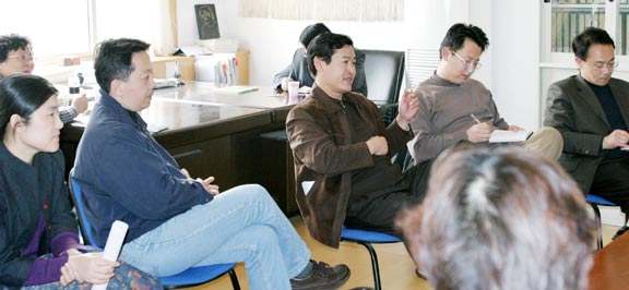 副处长及有关工作人员来到现代手工艺术系听取有关教学工作的意见和建议、督促落实“教学研究年”相关事宜,并就教学理念与教学方法的探讨和研究、学分制的制订和实施、教学计划与教学大纲的修订等问题与现代手工艺术系的师生进行了长达3小时的座谈和交流。