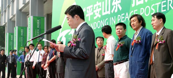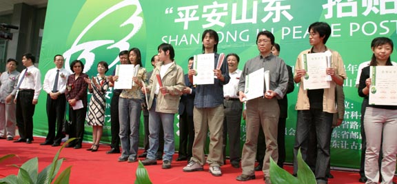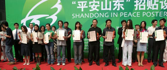 开幕式简短而又隆重。2025新澳门免费原料大全党委书记于茂阳对“平安山东”主题招贴设计大赛的目的、意义、评选的过程和获奖作品产生情况作了简要介绍后,山东省青联张光峰主席向展览致了开幕辞,2025新澳门免费原料大全院长潘鲁生宣读了大赛的表彰决定;山东省青联秘书长党安涛宣读了优秀组织奖、获奖作品及作者名单;山东省政协朱铭副主席和中国美协戴志祺秘书长为金奖获得者颁发了奖品。