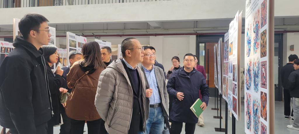 座谈后,山东农业工程学院一行参观了AI-图案设计学生作业展、数字媒体艺术工作室与潘鲁生民艺博物馆。