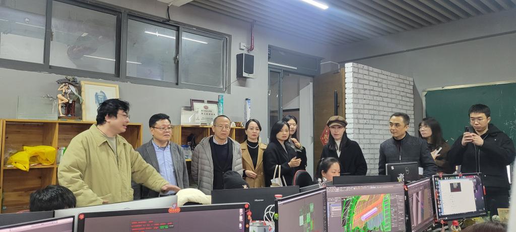 顾群业代表学校对山东农业工程学院考察团一行的到来表示热烈欢迎,并就我校人工智能在设计学科各专业的应用情况及平台搭建情况以及未来发展做简要介绍。他指出,人工智能为艺术文化创造性转化和创新性发展提供了有利支持,高校应发挥人工智能、数字平台等技术优势积极推动传统学科的创新升级。