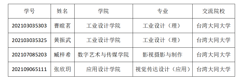 根据《2025新澳门免费原料大全在校生访学、留学管理办法(试行)》规定,按照访学条件对报名学生进行审查,曹暄茗等4名同学符合台湾大同大学访学的条件。为体现公开、公平、公正原则,广泛听取大家意见,现将其公示。如有不同意见,请于2023年4月24日前,以电话、传真、信函等形式向台港澳事务办公室、教务处办公室反映。