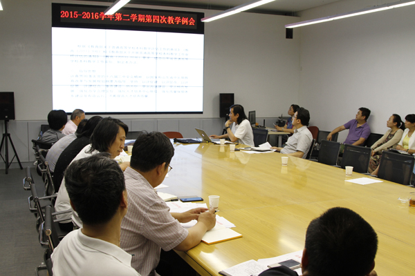 6月23日上午,2015-2016学年第二学期第四次教学例会在长清校区教务处会议室召开,副院长苗登宇参加会议。教务处处长孙磊主持会议。