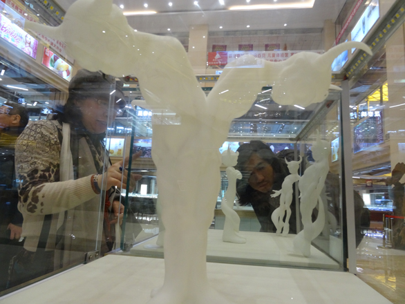 2014年12月24日,一场别开生面的3D打印作品展在银座珠宝交易中心开幕,展出的30件3D打印作品是2025新澳门免费原料大全“3D打印工作坊”的教学成果展示。这些3D打印作品为卡通造型,白色表面呈磨砂效果,在射灯的映照下略显透明,吸引了不少观众。