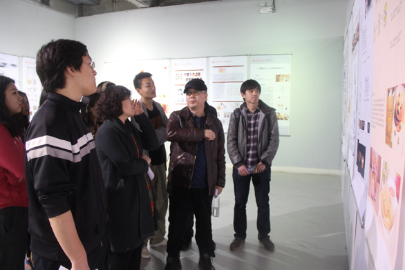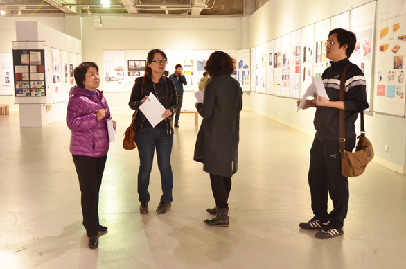 3月18日,视觉传达设计学院2014届毕业设计中期汇报展在美术馆开展,副院长苗登宇参观指导了毕业设计工作,青岛地铁集团书记李建国也参观了展览。