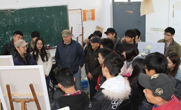 2013年11月27日上午,我校老教授协会成员赵德昌教授、丁庆平教授来到长清校区教学楼听取了造型艺术学院刘宁老师为2012级油画班讲授的《油画静物写生》课程。