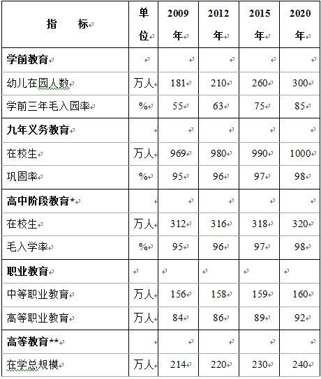 (二)总体目标。到2020年,全面实现教育现代化,建成学习型社会,实现由教育大省向教育强省、人力资源大省向人力资源强省的跨越。