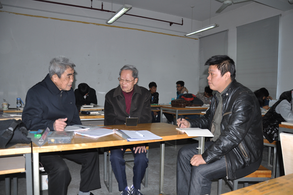2012年11月1日,老教授协会成员叶景臻、丁永源教授来到我校长清校区教学楼,听取了建筑与景观设计学院王健老师的《画法几何与专业制图》专业基础课。 两位老教授认为王健老师整体上讲课效果良好。备课充分、成熟,讲课生动、条理。建议课件的图形和文字更清晰一些,并适当结合板书进行示范。