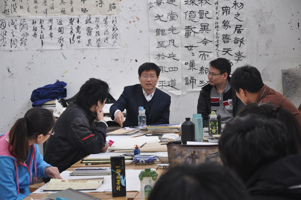 2012年3月31日上午,副院长张云龙来到我校长清校区教学楼造型艺术学院教室,听取了徐学标老师的《行书临摹》专业课。 张云龙副院长对徐学标老师的讲课表示了肯定,认为他善于调动课堂气氛,课堂教学秩序良好,同学们听课非常认真。老师备课充分,讲课精神饱满,声音洪亮,充满激情。另外,要多启发学生,尽量多给学生思考的机会。