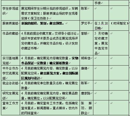 三、展览工作安排表: