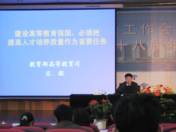 教育部高教司司长助理、综合处处长宋毅作了题为《建设高等教育强国,必须把提高人才培养质量作为首要任务》的专题报告。报告从建设高等教育强国的努力方向和基本思路以及如何把握提高人才培养质量的要求和新特点两个方面进行了系统阐述,并就“质量工程”的内涵与建设内容作了详细说明,强调高等学校应扎实推进“质量工程”。