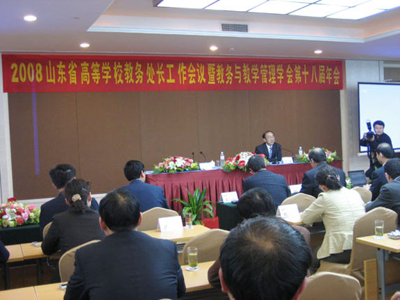 4月23日至25日,2008年山东省高等学校教务处长工作会议暨教务与教学管理学会第十八届年会在青岛举行。教育部高教司司长助理、综合处处长宋毅,省教育厅厅长齐涛,副厅长宋承祥出席会议并讲话。青岛市委常委、副市长张惠、青岛科技大学校长马连湘致辞。省教育厅有关处室负责人,全省一百余所高校教务处长参加了大会。教务处处长