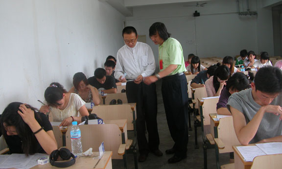 6月23日,大学英语四六级考试在千佛山校区和长清校区同时展开。本次考试我院共有四级考生2541人,其中长清校区2168人,设考场73个;千佛山校区373人,设考场13个。六级考生共有44人,其中长清校区36人, 设考场2个;千佛山校区8人,设考场1个。另外还有一名日语考生,考场设在长清校区。本次四六级考试的规模创历年新高,考生总人数达到2586人,共有188位教师参加了监考工作。