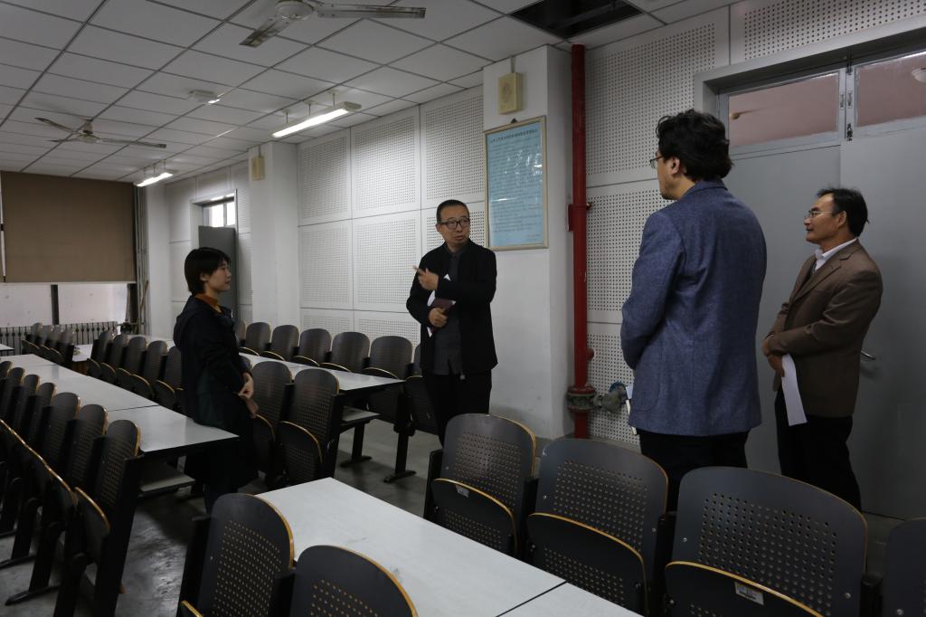 为深入贯彻落实全国、全省高校思想政治工作会议精神,贯彻教育部本科工作会议“以本为本”的要求,近期,学校领导加强对本科思想政治理论课的听课督导。10月29日上午,院长潘鲁生在长清校区一合堂听取了李灿老师讲授的《思想道德修养与法律基础》课。教务处处长孙磊、思政理论教学部主任丁炳堂陪同听课。