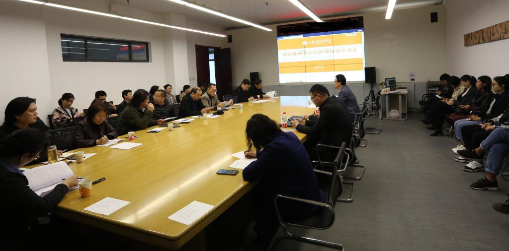 我校学分制教学改革已试行一个学期,为检验学分制教学改革中存在的质量问题,继续推动学分制改革工作有序平稳运行,2019年3月19日(星期二)上午,学校推进学分制改革经验交流会暨本学期第二次教学例会在长清校区教务处会议室召开,会议由教务处处长孙磊主持。