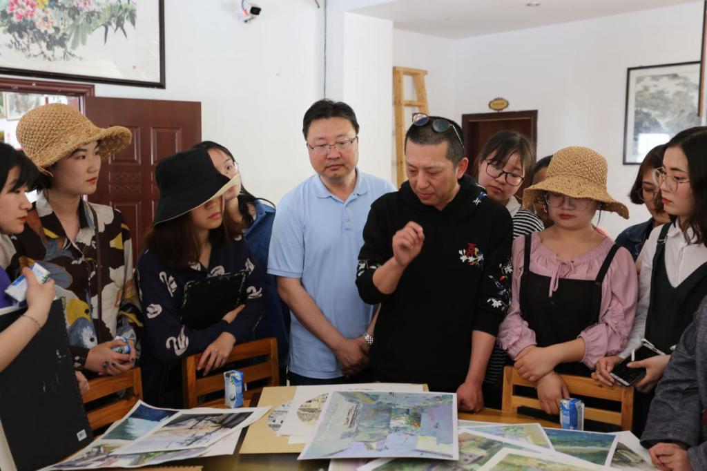 在与带队教师深入座谈、听取基地负责人汇报、询问学生学习及生活情况后,何思清书记表示,写生基地总体情况良好,校舍安全、饮食健康,教师负责,学生认真。他强调,学校之所以专门开设写生课程,是为了让学生学会用眼睛去观察,用审美去发现,切实改变高考培训带来的应试弊端,在与大自然和本土文化的深入互动中提升自身的鉴赏力、创造力。要在有限的写生课程中汲取充足的养分,提升自身绘画水平和创作能力,认真学习,互相帮助,潜心创作,服从管理,圆满完成写生课程学习。同时,希望各带队教师务必要明确责任、提高意识,时刻将大家的人身安全放在首要位置,要坚持每日查房、每日评画,每日打卡,避免学生出现“放羊”状态;何思清书记要求返校后,学校要选出优秀写生作品进行写生创作展。