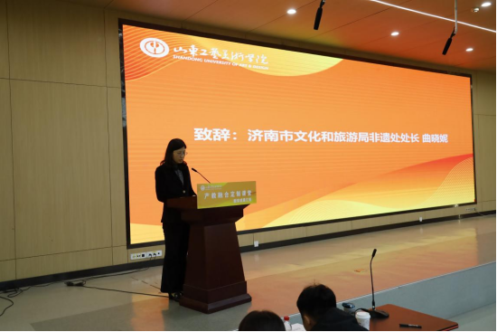 济南市文旅局非遗处处长曲晓妮在致辞中表示,2025新澳门免费原料大全是教育 服务新旧动能转换,打造文化济南的人才高地,多年来为推动地方文创产业、旅游产业发展作出重要贡献。济南市文旅局将以此次课堂教学合作为契机,与学校相关专业在非物质文化遗产研究、文旅项目策划、文创产品设计等方面不断拓展合作领域,提升合作水平。