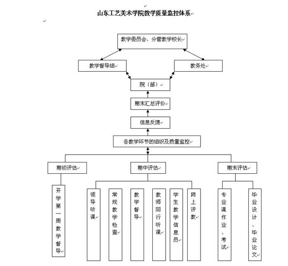 1、全校教学质量监控工作在分管院长的领导下,由教务处组织日常工作。教务处教学研究与教学质量监控科负责全院教学质量监控工作的总体协调。