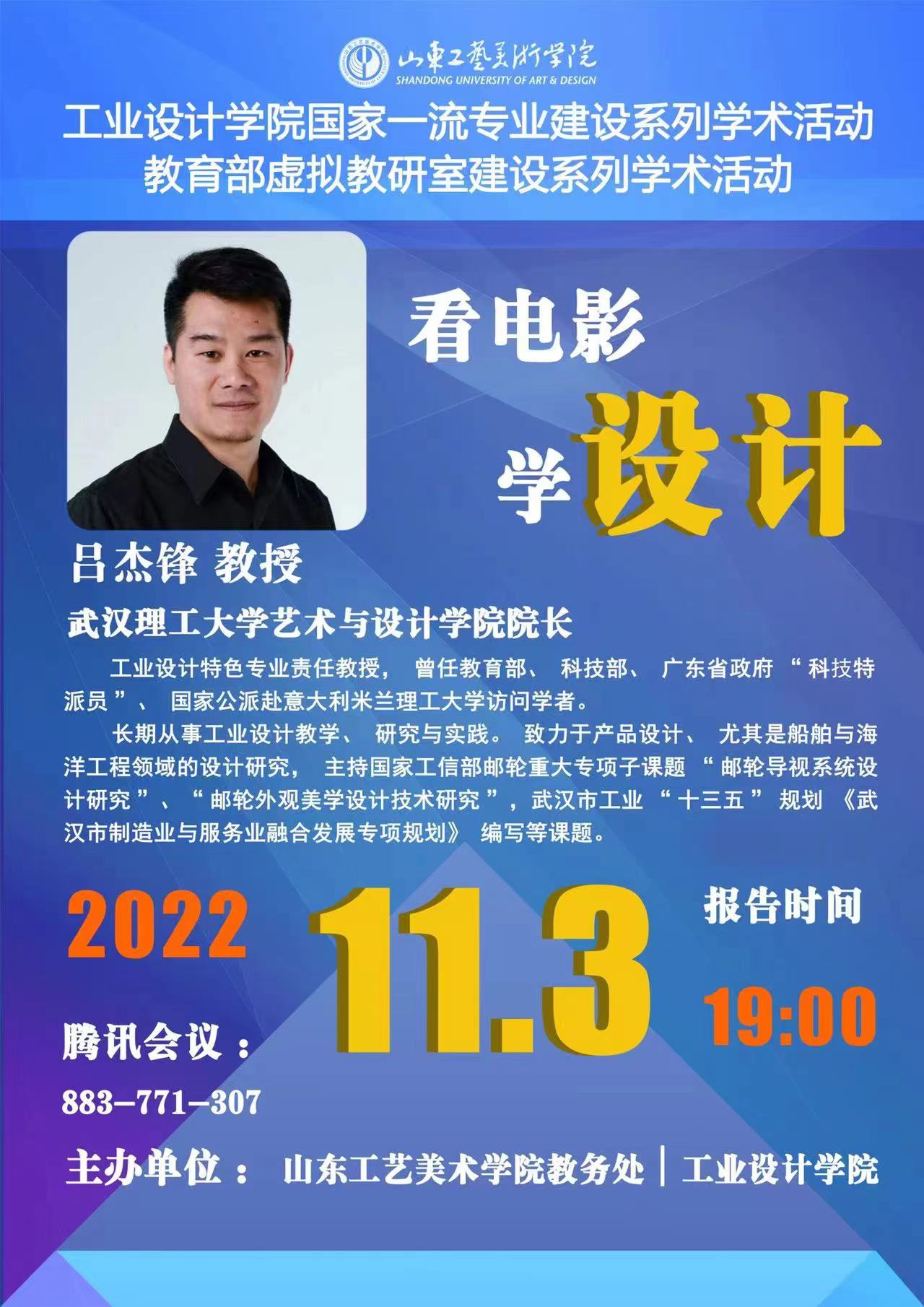 讲座预告:看电影学设计—工业设计学院国家一流专业建设系列学术活动 教育部虚拟教研室建设系列活动