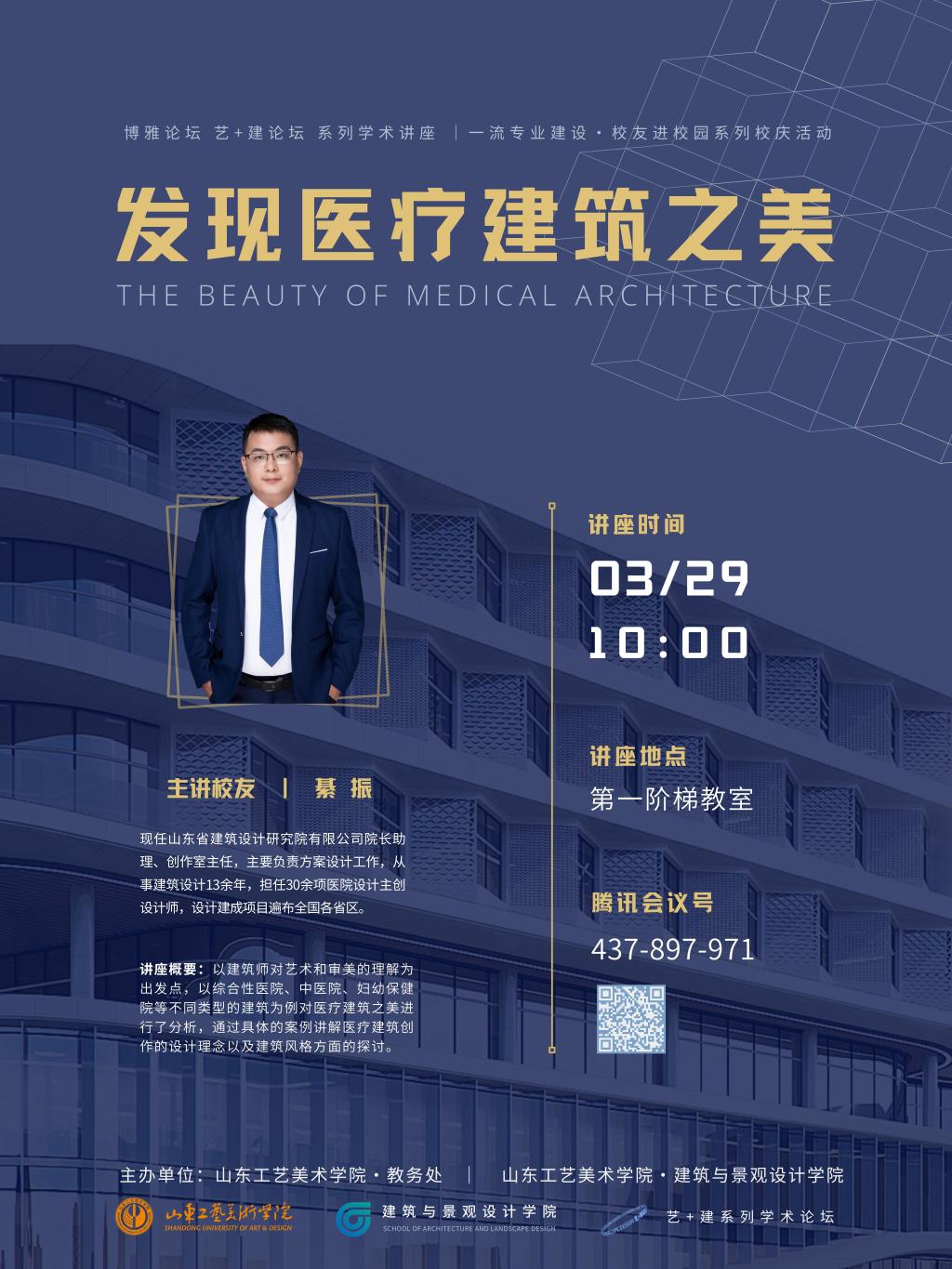 讲座概要:讲座以建筑师对艺术和审美的理解为出发点,以综合性医院、中医院、妇幼保健院等不同类型的建筑为例对医疗建筑之美进行了分析,通过具体的案例讲解医疗建筑创作的设计理念以及建筑风格方面的探讨。