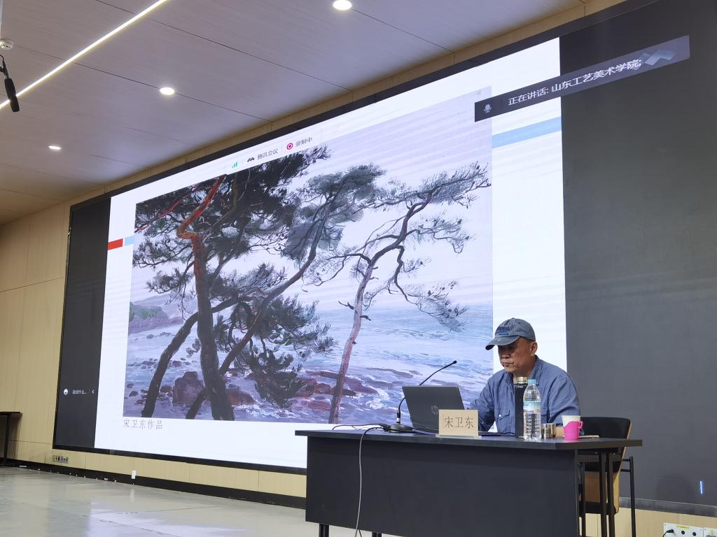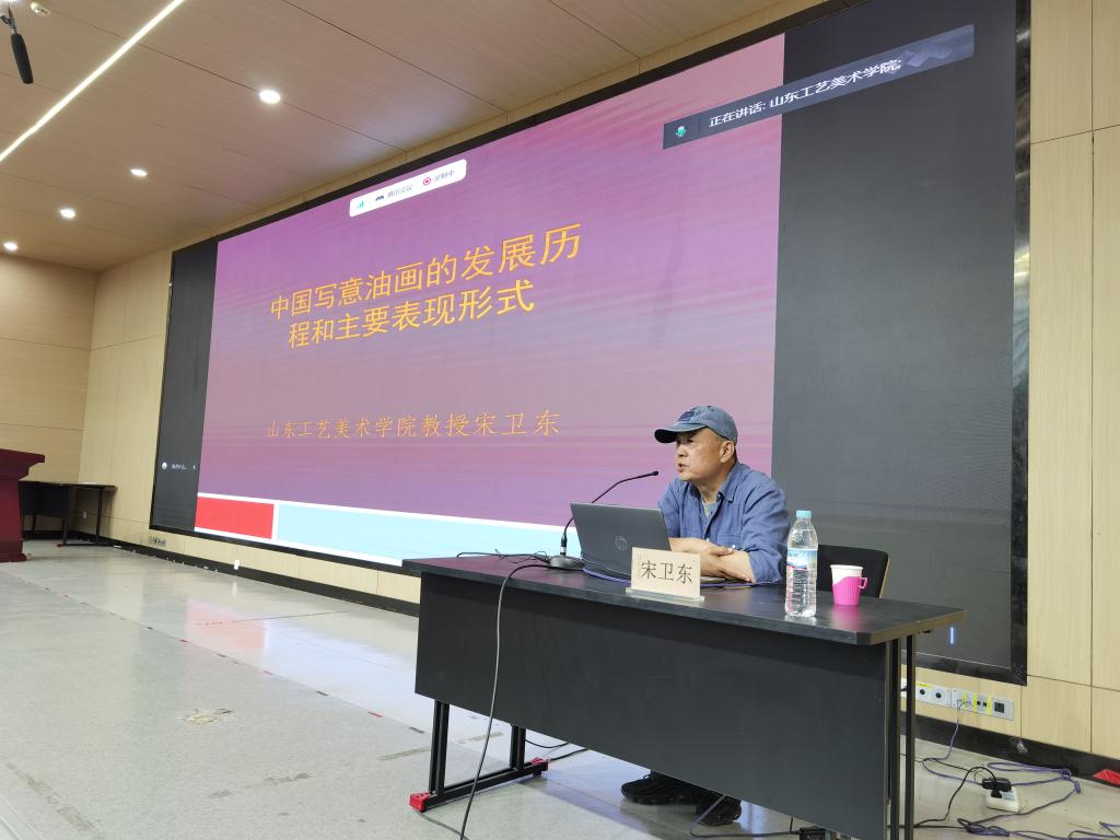 4月17日,宋卫东教授于长清校区阶梯一教室为学校师生做《中国写意油画的发展历程和主要表现形式》讲座,教务处处长顾群业主持讲座并致开场辞,学校师生通过线下线上结合的方式听取了讲座。