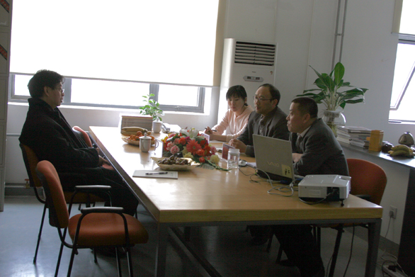 服装学院院长徐思民教授从该学院概况、学院规划、办学思想及实施、质量监控体系及服装学院今后规划等方面以幻灯片放映的形式向刘伟冬教授做了详细汇报。汇报中,服装学院院长徐思民教授结合图片等详细介绍了近几年来服装学院在对外交流及著作论文、学院活动以及自我建设等方面的情况,展示了服装学院的教学目标定位,教学改革、专业构成、学科建设,师资建设,教学工作思路,专业办学特色,教学建设改革的成效,院风、学风建设等成就。让刘伟冬教授详细了解了服装学院强调的以项目设计为单元,实习基地为依托,以加强综合性的理论学习与技能训练为目标的“实践型教学”的学院特色。当专家看到T台上姿态优美,自信十足的师生,规模庞大的服装设计实验室以及讲师一篇篇发表的著作时,刘伟冬教授连连点头,表示赞许。期间,刘伟冬教授颇有感慨的表示,通过昨天对我校的考察,对我校近年来所取得的巨大成绩感到高兴。