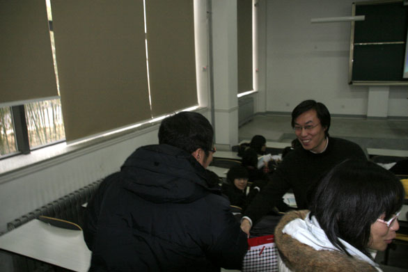 随后,李森教授来到教学楼 188教室,听取了张长征老师讲授的《设计过程与方法》课程。首先,由学生分组讨论“儿童座椅设计方案”,结合学生讨论情况,张长征老师以香港某大学校徽设计为例,对完整的设计程序做了深入浅出的介绍,他认为,一个完整的设计程序应该包括收集信息、好的创意、研究分析、设计草案、发展优化等几个关键阶段,要充分考虑轻盈性、可视性、快速性、多重新、精确性、相容性等有关问题。同学们在张长征老师的指导和鼓励下,对设计过程与方法有了初步的了解,授课效果良好。